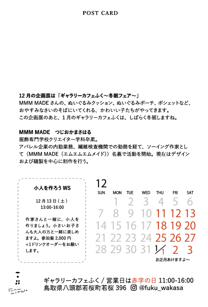 「ギャラリーカフェふく〜冬眠フェア〜」